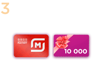 Еженедельный приз: Универсальный сертификат в Магнит номиналом 1 000 р. Использование сертификата осуществляется в соответствии с правилами использования, размещенными по адресу: https://magnit.ru/certificate/. Общее количество – 84 шт. на весь период Акции.